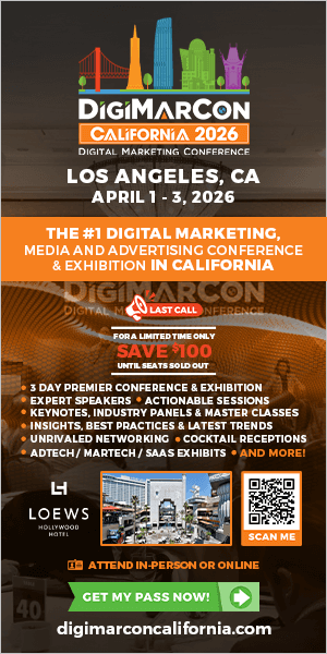 DigiMarCon California 2026 offers all of the elements you need to achieve digital marketing success! Conventional thought will be challenged, new ways of thinking will emerge, and you will leave with your head and notebook full of action items and ideas to lead your agency / team / account to even greater success.